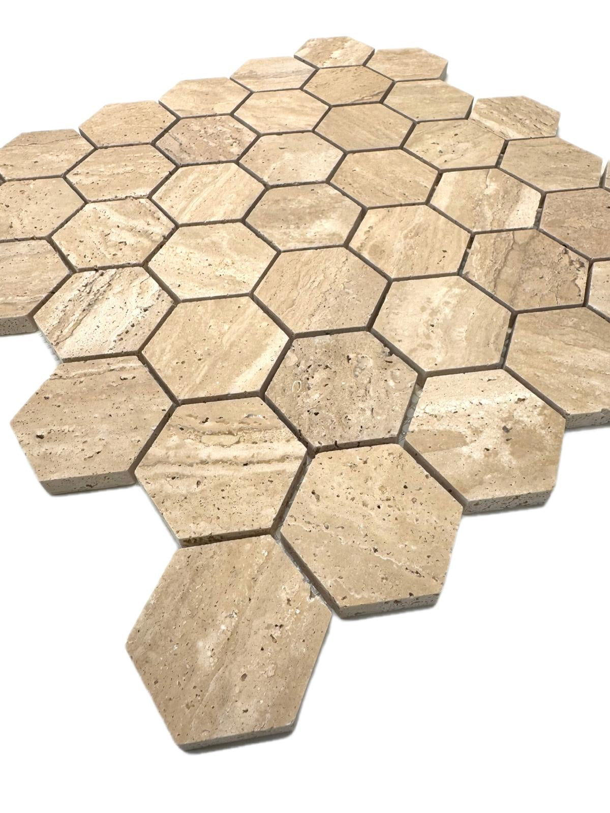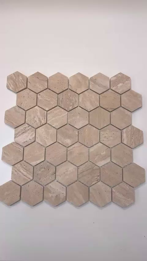 art 709 Travertin Hexagon Marmer Mozaïek 48x48mm op matje 300x300x10mm